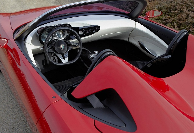 The Alfa Romeo 2uettottanta Concept is also a tribute to Alfa Romeo, which celebrates its centenary in 2010: the alliance between Alfa Romeo and Pininfarina is one of the most significant and durable in the history of the car, one of men and of passion, of design and cutting-edge technical solutions, which has generated an inestimable number of good-looking, innovative cars with plenty of temperament. With a predilection for sports cars and convertibles. The aim is to replicate all this with the Alfa Romeo 2uettottanta Concept. So a clean, elegant line was chosen for this "simple 2-seater", which is proposed with a 1750 cc turbo engine positioned longitudinally, an obvious reference to the "1750 Veloce" of 1968, one of the many versions derived from the famous "Osso di Seppia" (Cuttlefish). With its red bodywork, inspired by the typical Alfa Romeo paintwork, the 2uettottanta is 1797 mm wide, 4212.6 mm long, 1280 mm high and has a wheelbase of 2500 mm.